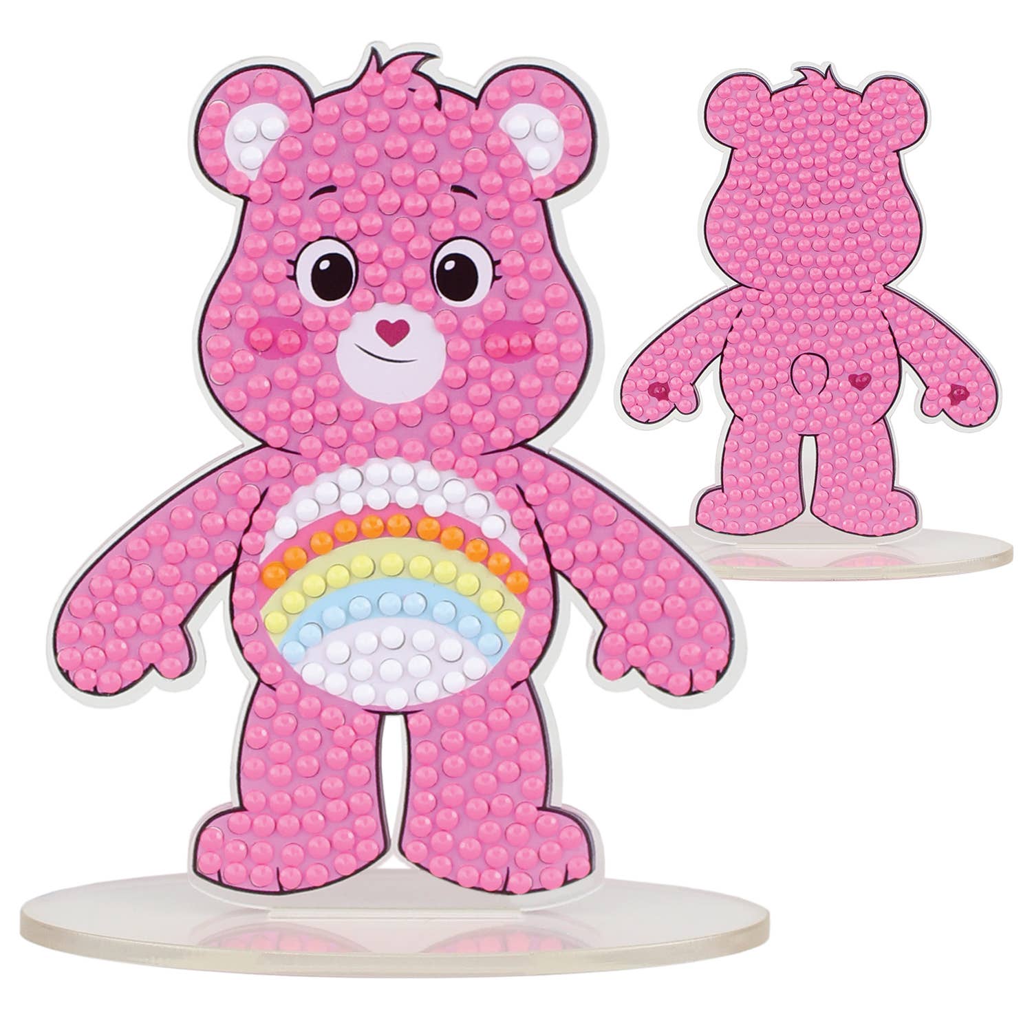 Simply use the stylus to pick up each gem and place it on the matching symbol. The gems come pre-sorted by shade, making this an easy and relaxing craft for kids, teens, and grown-up fans of the Care Bears. Once finished, Cheer Bear stands proudly on the included base as a bright, cheerful display piece.